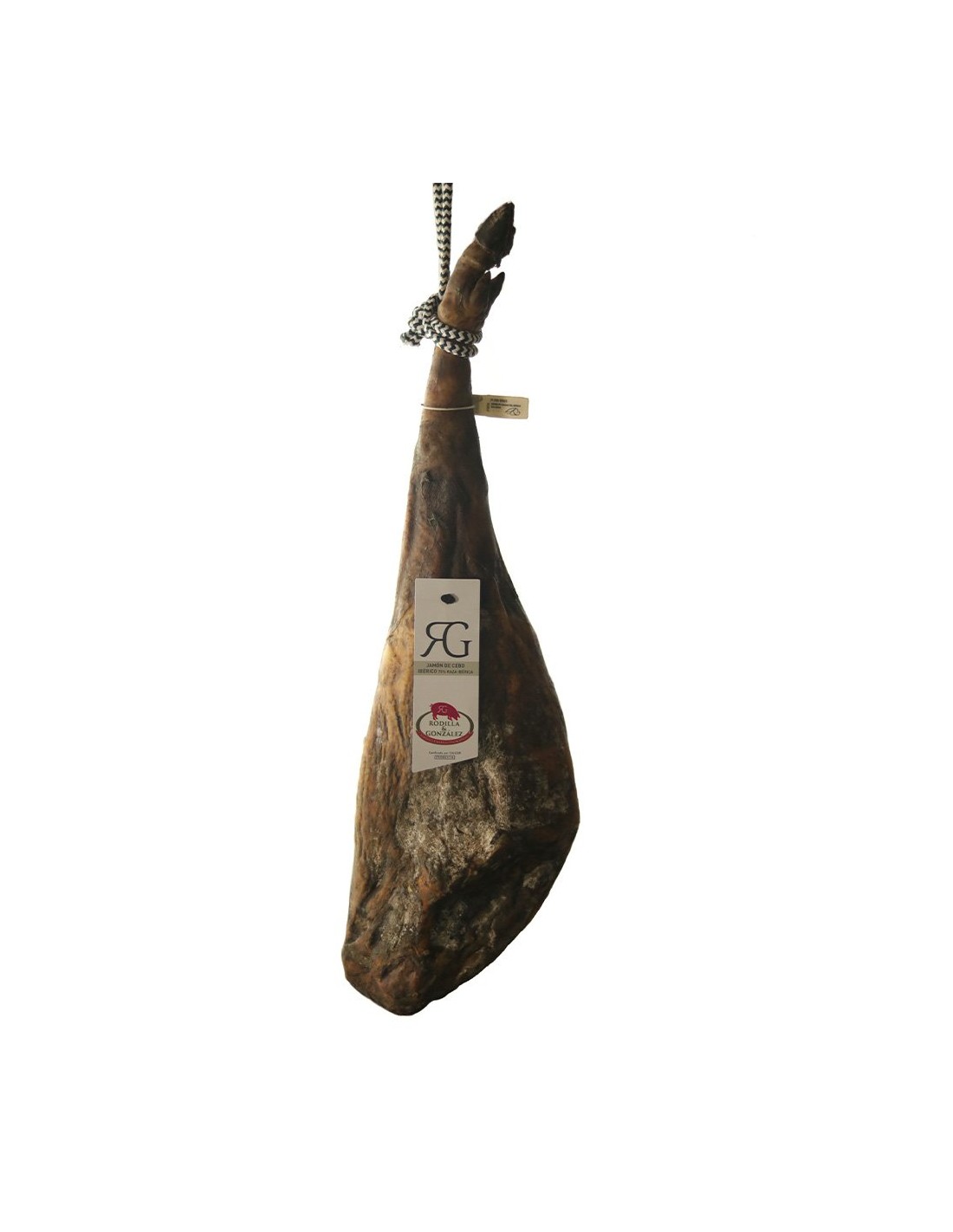 Jamón de Cebo ibérico 75% etiqueta blanca de cerdos ibéricos que han sido criados en intensivo y alimentados con piensos naturales.